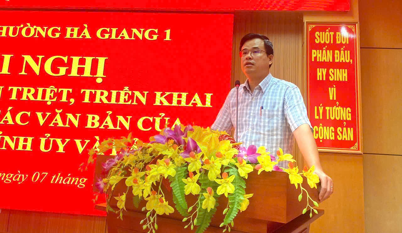 Đồng chí Lê Xuân Mạnh, UV BTV Đảng ủy, Phó chủ tịch UBND phường Quán triệt, triển khai Nghị quyết Đại hội Đại biểu Đảng bộ phường Hà Giang 1 lần thứ I, nhiệm kỳ 2025-2030. Quán triệt Chỉ thị số 46-CT/TW ngày 16/5/2025 của Bộ Chính trị về lãnh đạo cuộc bầu cử đại biểu Quốc hội khóa XVI và bầu cử đại biểu Hội đồng nhân dân các cấp nhiệm kỳ 2026 - 2031.