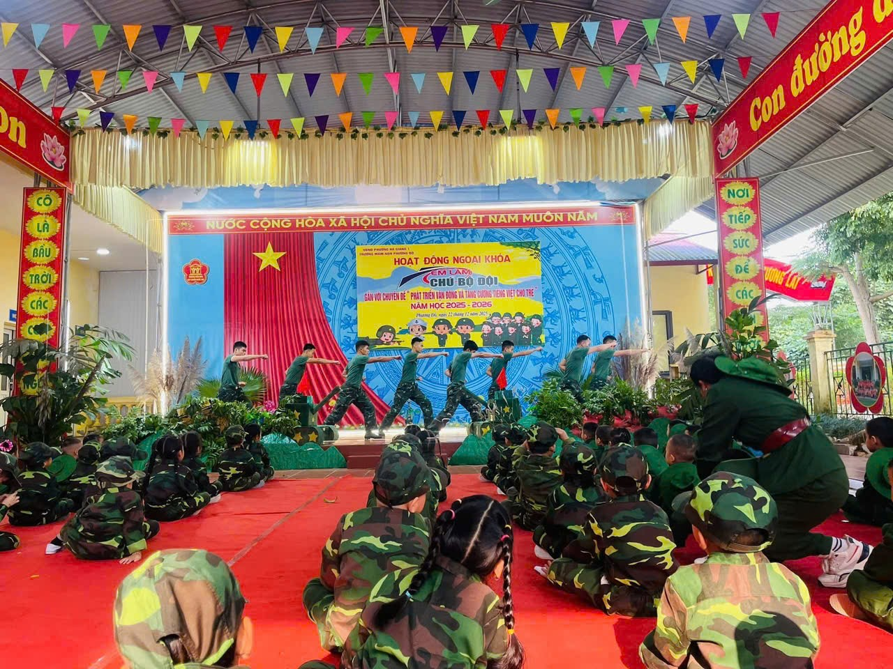Với sự chuẩn bị chu đáo, sáng tạo của đội ngũ giáo viên, môi trường trải nghiệm trực quan, sinh động đã được xây dựng, giúp trẻ hào hứng tham gia và dễ dàng tiếp cận nội dung giáo dục. Thông qua hoạt động, hình ảnh người chiến sĩ Quân đội Nhân dân Việt Nam trở nên gần gũi, thân thuộc đối với các cháu mầm non.